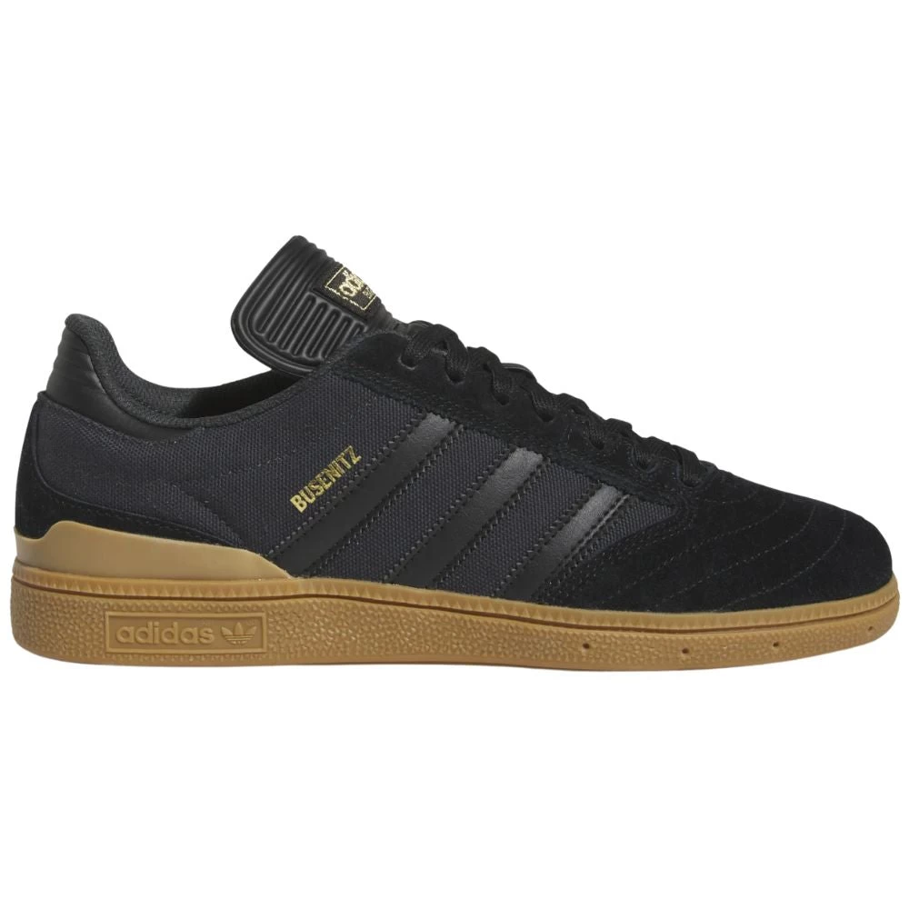 De Adidas Busenitz Core Black / Carbon / Gold Metallic staat bekend om de kracht en skateboard technologieën in de schoen. Het premium leren bovenwerk, de Geofit-boord, de voorgevormde Adiprene-inlegzool en de flexibele cupzoolconstructie creëren een goede pasvorm voor flick, controle en response.