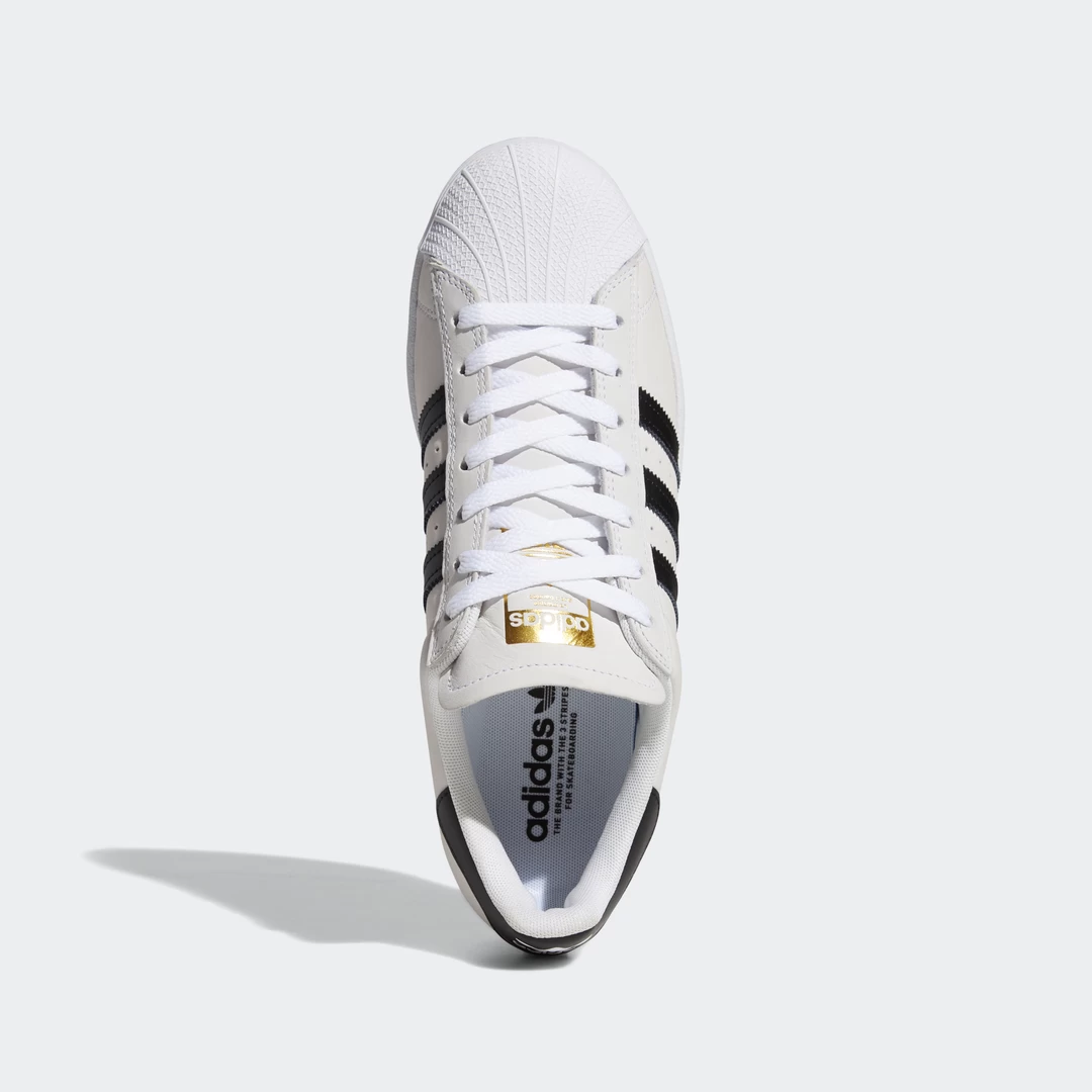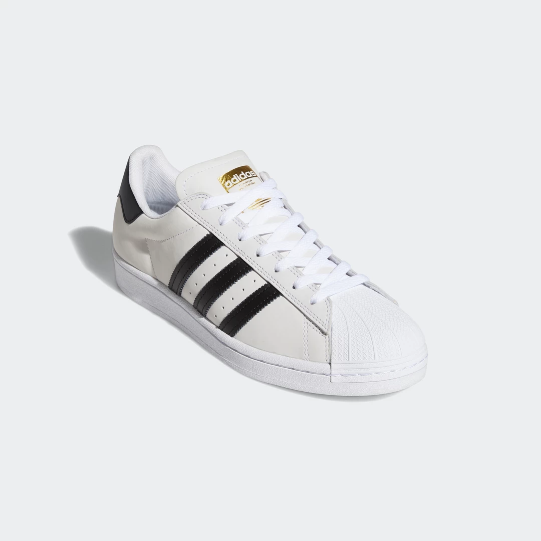 De Adidas Superstar ADV Cloud White/ Core Black/ Gold Metallic is een heruitgave van de originele skateschoen.ย