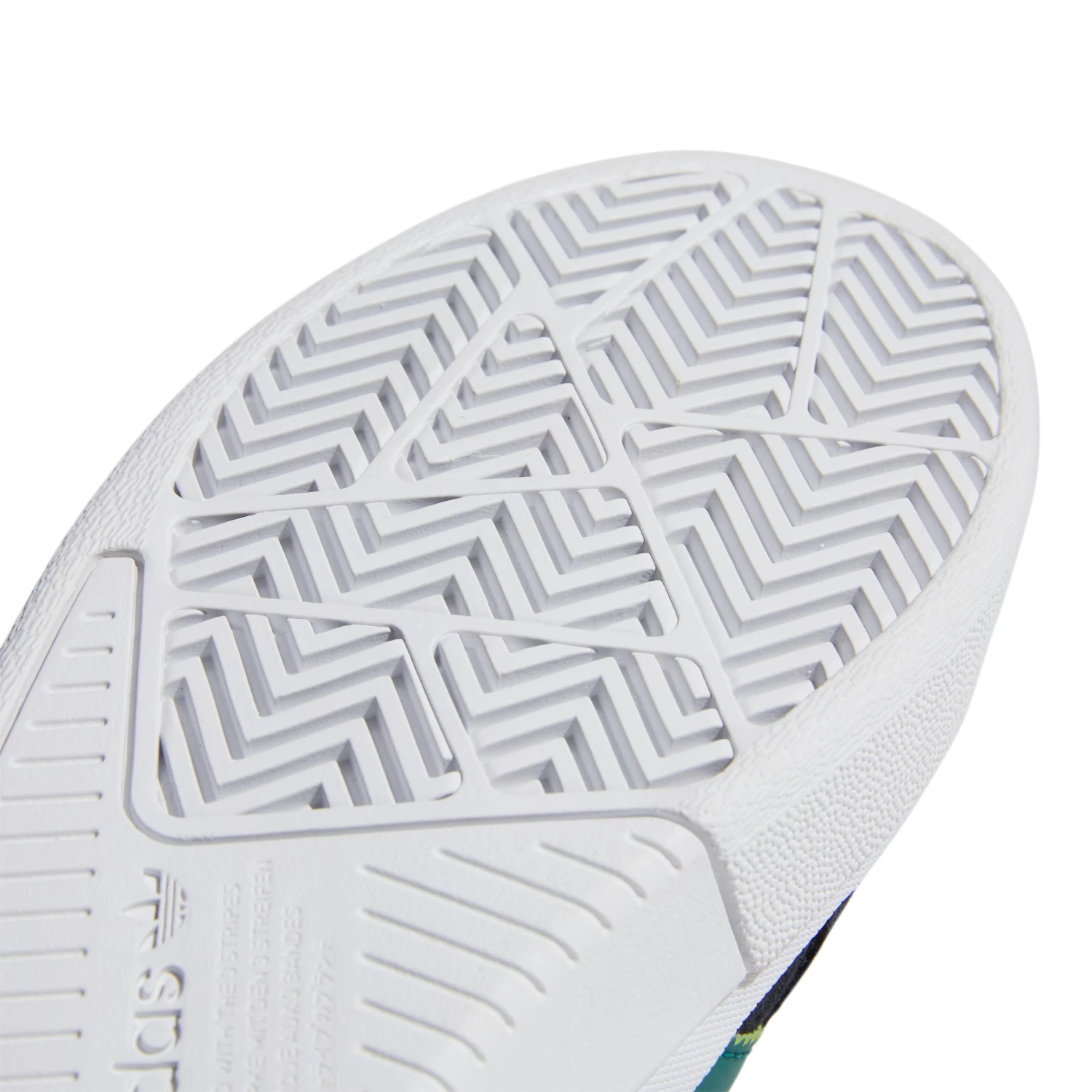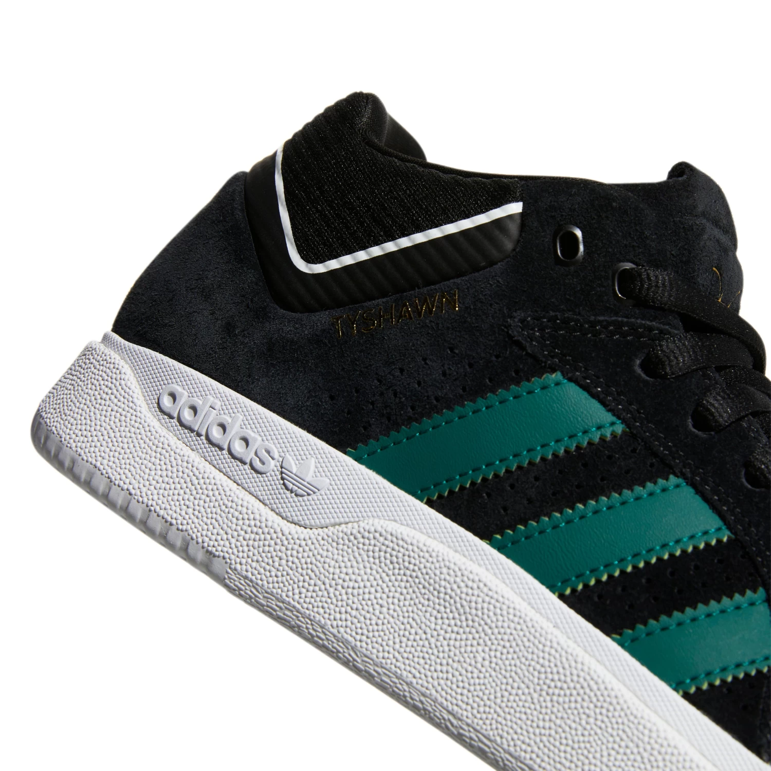 De Adidas Tyshawn Core Black / Collegiate Green / Cloud White brengt je een schoen, geïnspireerd op basketbal en vernieuwd voor het skateboard. De pro Tyshawn Jones ontwierp deze schoen met Adidas, met optimale technologieën voor skaters. Zo heeft deze sneaker een boord van traagschuim, een versterkte neus, een Adiprene-inlegzool, premium materialen en karakteristieke ‘dollargroene’ details.