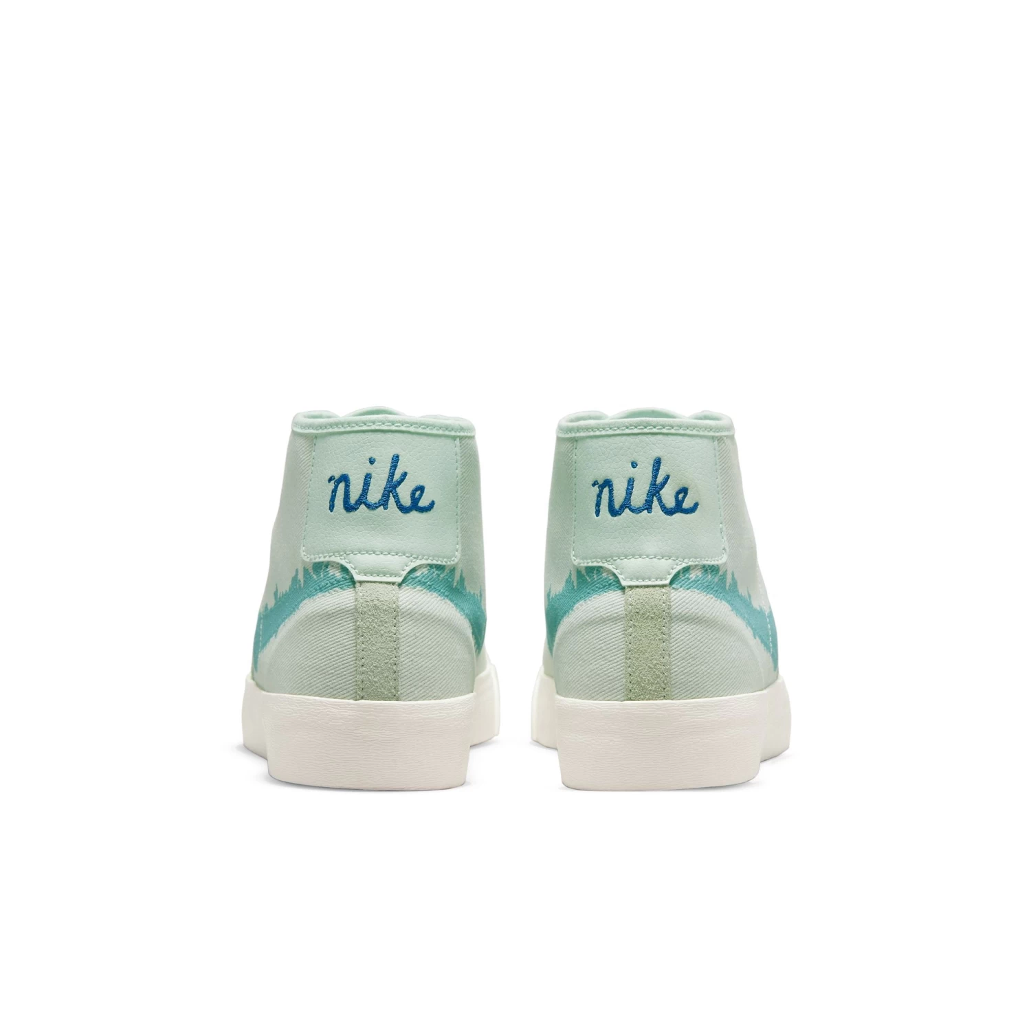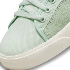 De Nike SB Blazer Court Mid Premium Barely Green/Barely Green/Sail/Boarder Blue werd gemaakt met vintage materialen voor een retro vibe. Deze minimalistische look heeft alle technische eigenschappen die een skateschoen nodig heeft. Zoals de versterkte ollie-zone en het flexibele stroeve rubber.