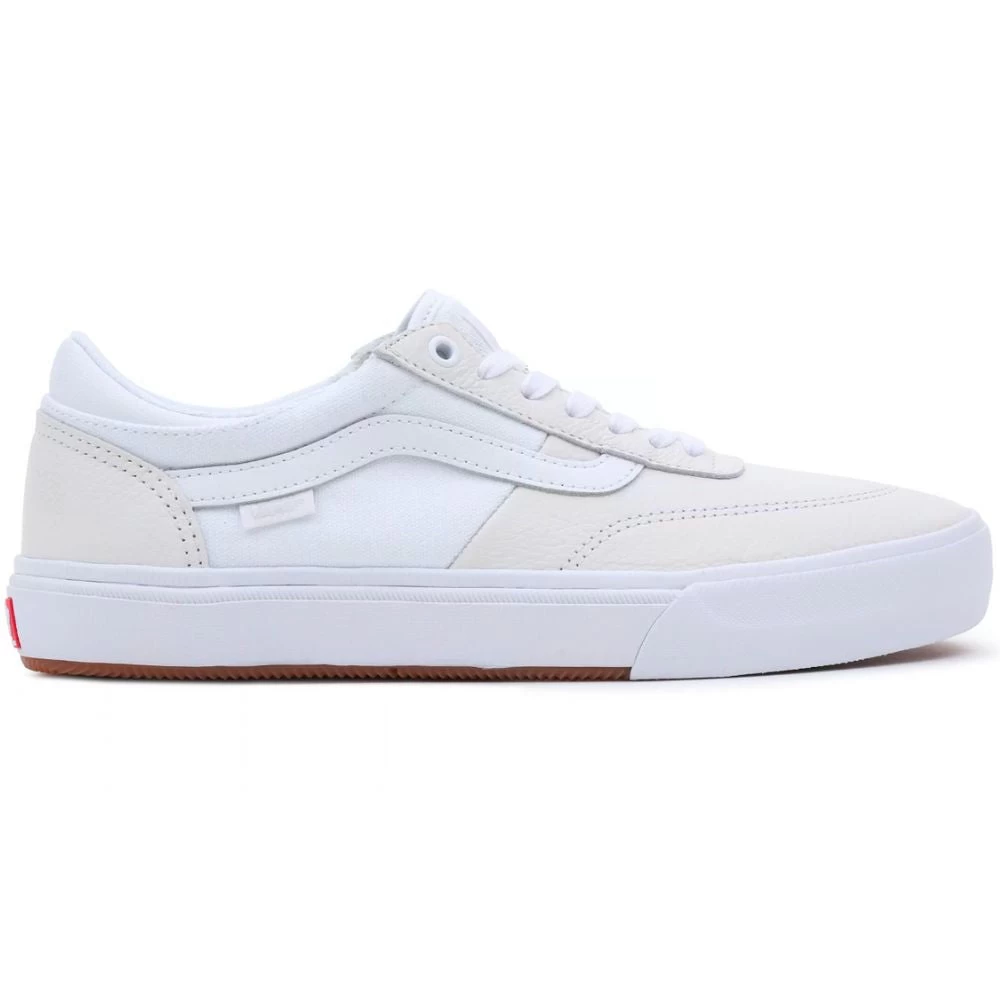 De Vans Gilbert Crockett Leather White is het pro model van Gilbert Crockett. Deze skateschoen heeft een bovenwerk van stevig leer en canvas met Duracapâ˘-verstevigingen op slijtagegevoelige plekken voor ongeĂŤvenaarde duurzaamheid. Dankzij de nieuwe popcushâ˘-binnenzool heeft de schoen superieure demping en impactbescherming. Daarbij biedt de revolutionaire Wafflecupâ˘-constructie de ondersteuning van een cupzool, waarbij de grip en het boardgevoel van een traditionele gevulkaniseerde schoen behouden blijven.