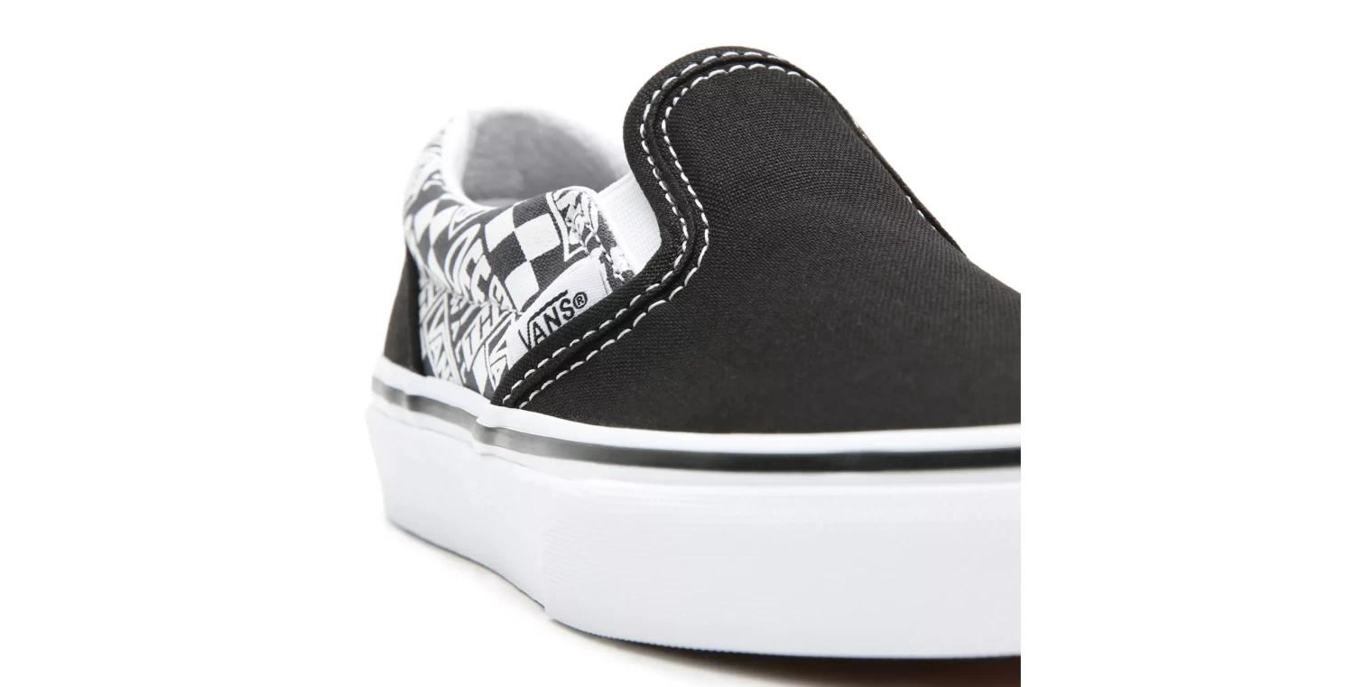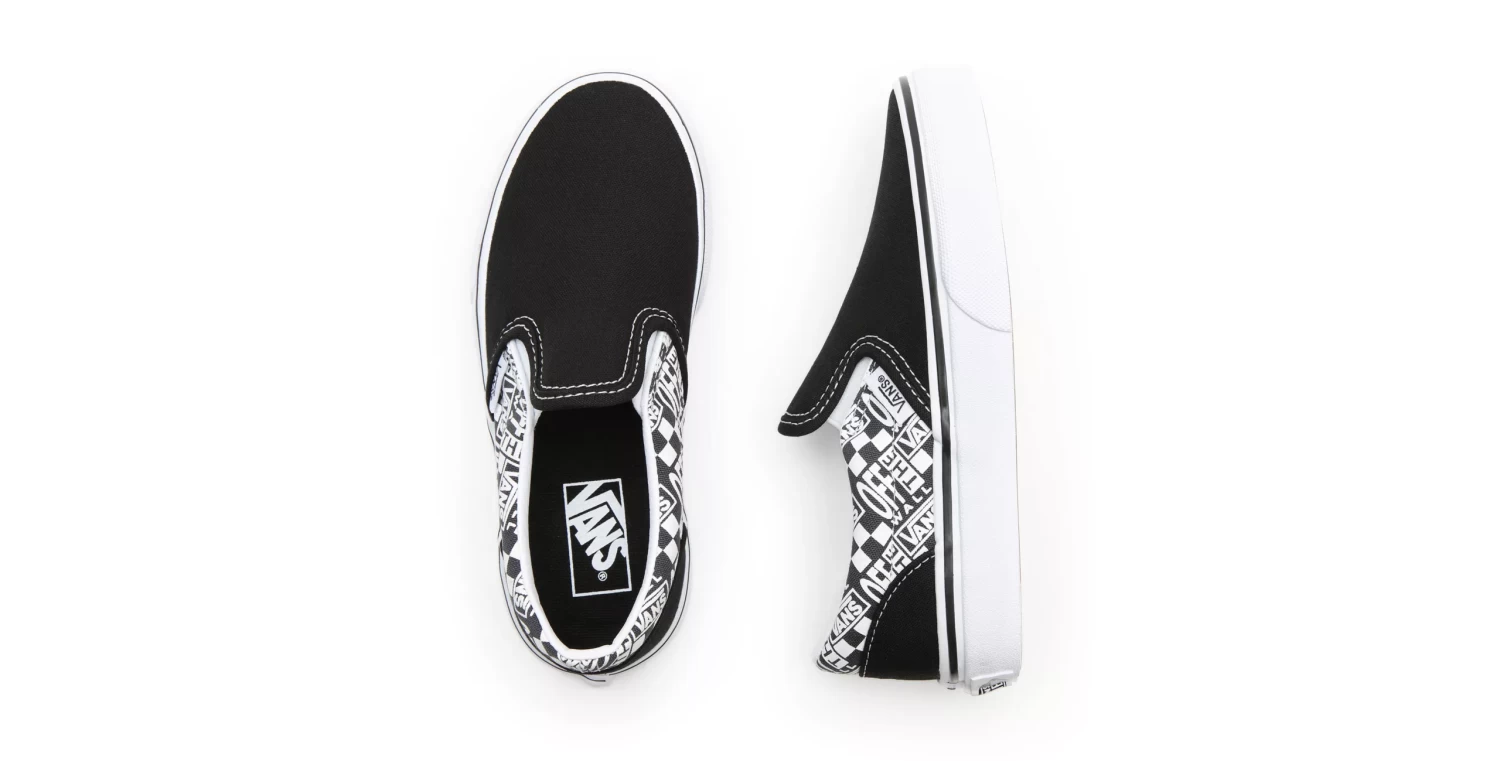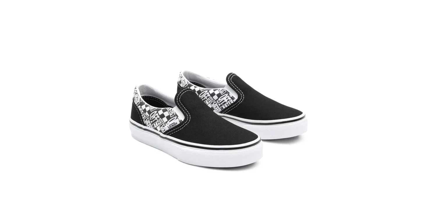 De Vans Kids Classic Slip-On Off The Wall Black/Asphalt is de perfecte schoen voor de kids die niet graag veters knopen. Deze schoen heeft een UltraCush binnenzool voor extra demping en impact bescherming. De Vulc Lite constructie zorgt dan weer voor een lichtere en flexibele schoen.