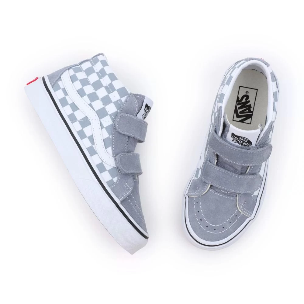 De Vans Kids Sk8-Mid Reissue Color Theory Checkerboard brengt een oude klassieker helemaal terug. Deze is afgewerkt met een checkerpatroon en dubbele klittebandsluiting.