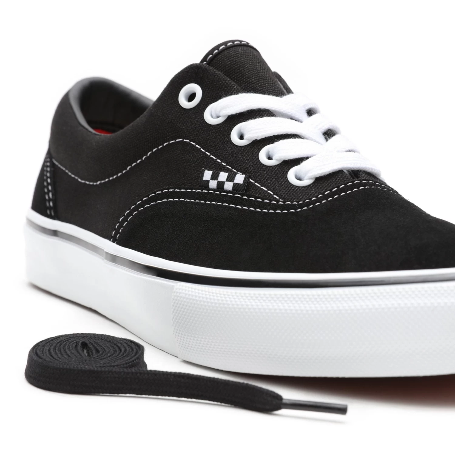 De Vans Skate Era Black/ White is een skate schoen die ervoorย zorgt dat je altijd een goede grip hebt tijdens je skateboard sessies.ย Hetย Era modelย werdย opnieuwย heruitgevonden voor echte skate fans.ย Met nieuwe afwerkingen, eenย geblokte vlag en ‘Skateboarding’ branding die de iconische stijl van dit model opnieuw laten schijnen. Hetย heeft een gewatteerde tong en voering voor extra comfort.ย Deze schoenย heeft ook een overlap van de zool,ย DURACAPย โขdat strategische gebieden met hoge slijtage versterkt om de levensduur van uw favoriete schoen te verlengen.ย Dankzij de nieuwe rubbersamenstelling wordt het grip niveau van de schoen verder verbeterd.