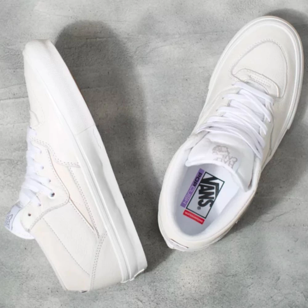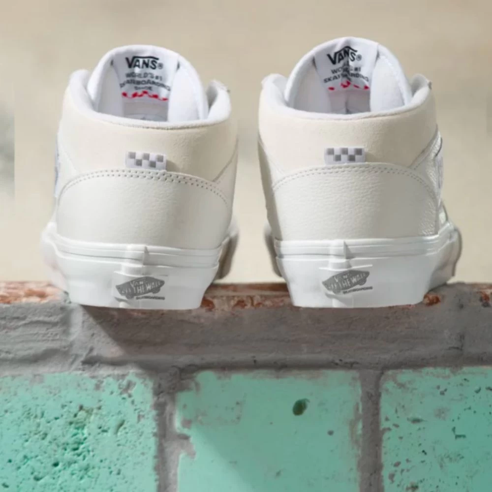 De Vans Skate Half Cab Daz White/White is een skate schoen die ervoor zorgt dat je altijd een goede grip hebt tijdens je skateboard sessies. Het Half Cab model werd opnieuw heruitgevonden voor echte skate fans. Met nieuwe afwerkingen, een geblokte vlag en ‘Skateboarding’ branding die de iconische stijl van dit model opnieuw laten schijnen. Het heeft een gewatteerde tong en voering voor extra comfort. Deze schoen heeft ook een overlap van de zool, DURACAP ™dat strategische gebieden met hoge slijtage versterkt om de levensduur van uw favoriete schoen te verlengen. Dankzij de nieuwe rubbersamenstelling wordt het grip niveau van de schoen verder verbeterd.