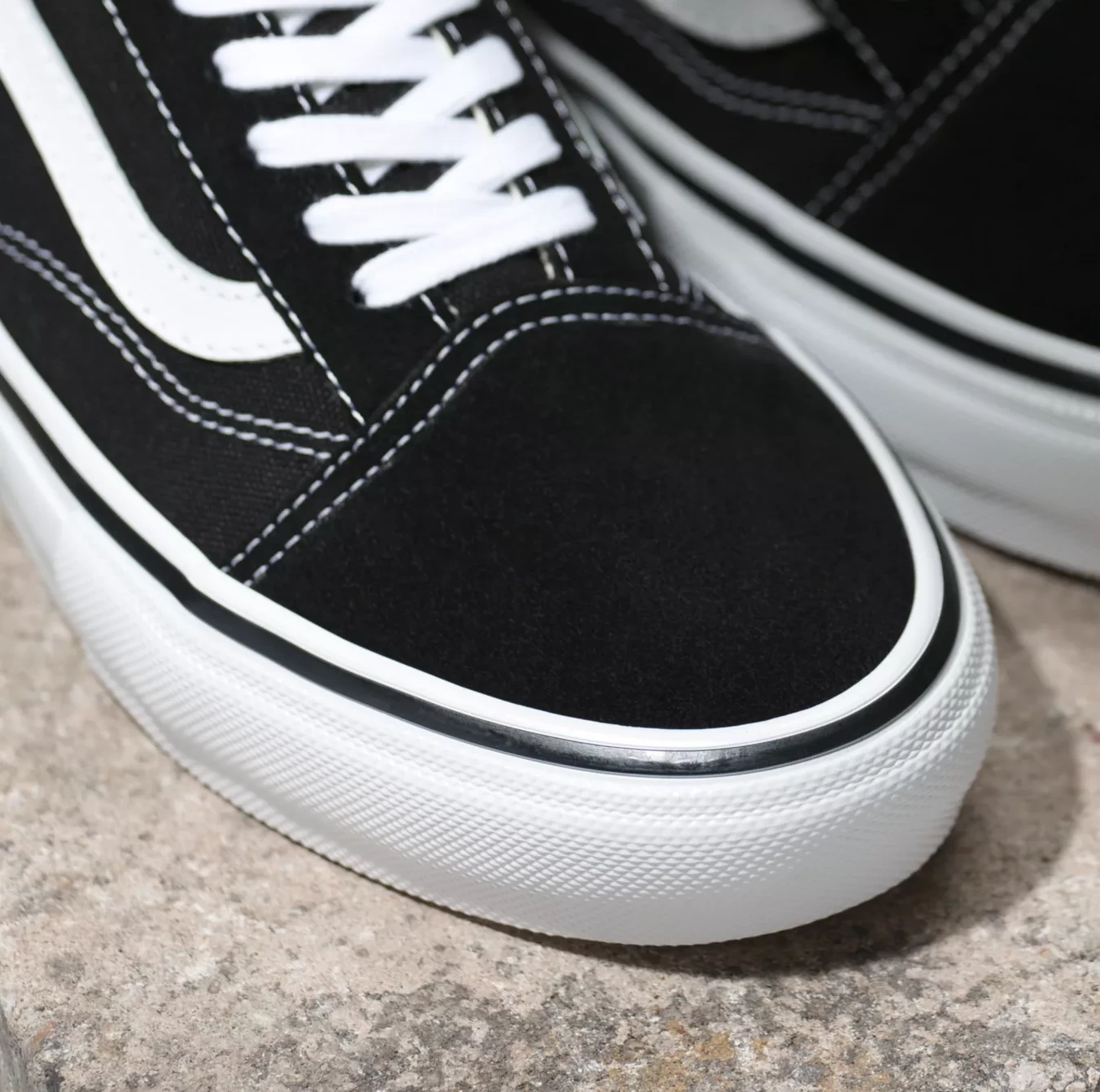 De Vansย Skate Old Skool Black/ White is de verbeterdeย Old Skool versie vanย de originele en inmiddels iconische lage schoen van Vans. Deze schoen heeft een bovenwerk van stevig canvas, de klassieke look van Vans, metalen veteroogjes en de kenmerkende rubberen wafelzool.