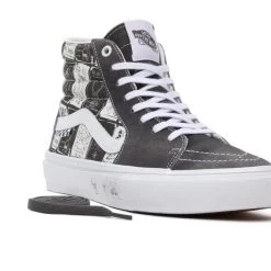 De Vans Skate Sk8-Hi Daniel Johnston Raven heeft een bovenwerk van canvas en suède met een patroon en een UltraCush HD-binnenzool die de voet dicht bij het board houdt en tegelijkertijd optimale schokdemping biedt.