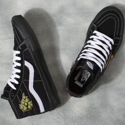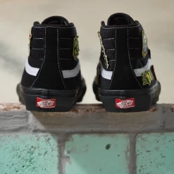 De Vans Skate Sk8-Hi Decon Elijah Berle Black/ Black behoort tot een volledige collectie die is geïnspireerd op Elijahs stijl. De zwarte Skate Sk8-Hi Decon komt met een assortiment afneembare patches. Pimp je schoenen hoe jij er zin in hebt!