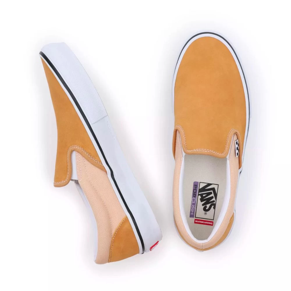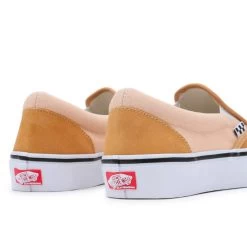 De Vans Skate Slip-On Honey Peach is een skate schoen die ervoor zorgt dat je altijd een goede grip hebt tijdens je skateboard sessies. Het Slip-On model werd opnieuw heruitgevonden voor echte skate fans. Met nieuwe afwerkingen, een geblokte vlag en ‘Skateboarding’ branding die de iconische stijl van dit model opnieuw laten schijnen. Het heeft een gewatteerde tong en voering voor extra comfort. Deze schoen heeft ook een overlap van de zool, DURACAP ™dat strategische gebieden met hoge slijtage versterkt om de levensduur van uw favoriete schoen te verlengen. Dankzij de nieuwe rubbersamenstelling wordt het grip niveau van de schoen verder verbeterd.