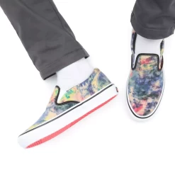 De Vans Skate Slip-On Tie-Dye Terry Black/Multi zijn awesome Vans skate schoenen. Deze hebben een bovenwerk van canvas en suède met een patroon en een UltraCush HD-binnenzool die de voet dicht bij het board houdt en tegelijkertijd optimale schokdemping biedt.
