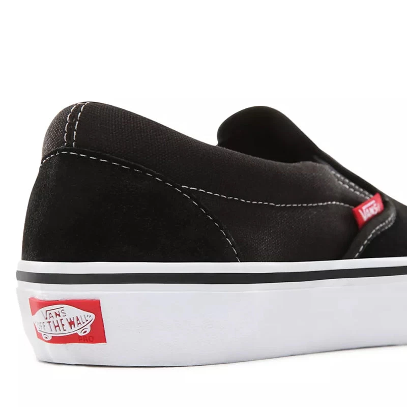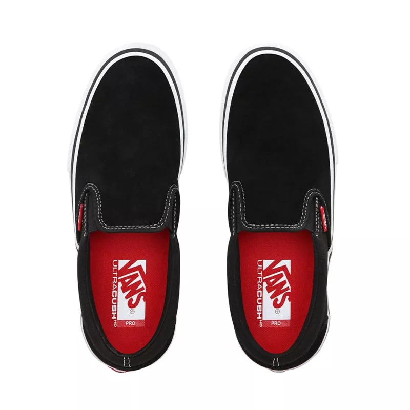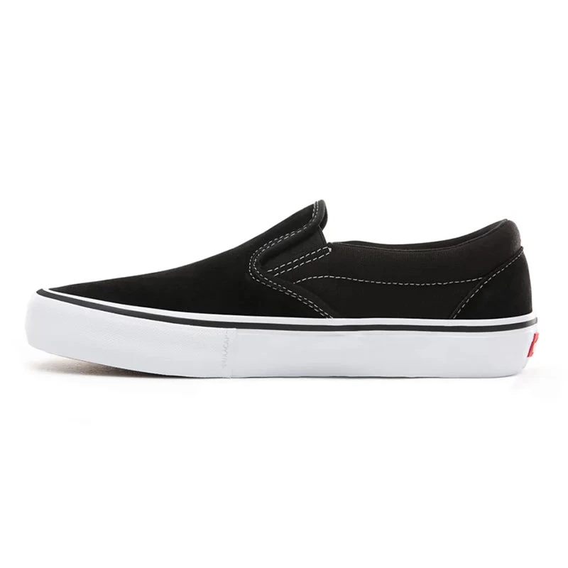 De Vans Slip-On Pro Black/White is een echte vans klassieker die ook steeds meegegroeid is met de nieuwe technologieen van Vans. Zo heeft deze de Duracap technologie die een rubbere versteveging heeft op slijtgevoelige plekken zodat je schoenen nog langer heel blijven tijdens het skaten. De UltraCush inlegzool geeft je de demping en inpactbescherming die je nodig hebt tijdens het skaten. Deze schoen heeft bovendien ook nog een enorme boardfeel en controle dankzij de Pro Vulc Lite constructie.